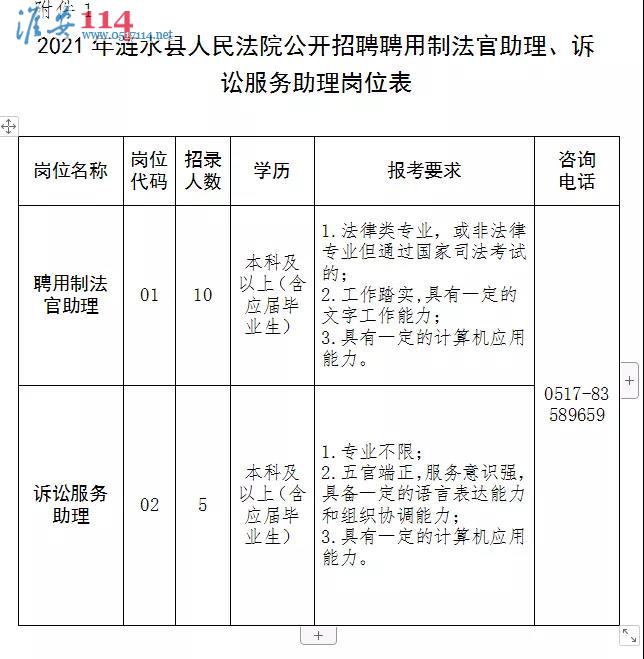1.2021年漣水縣人民法院公開招聘聘用制法官助理、訴訟服務(wù)助理崗位表