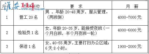 招聘崗位:普工、檢驗(yàn)員、保潔