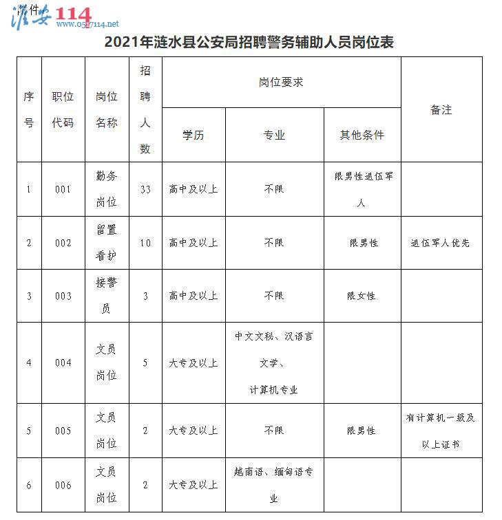 漣水縣公安局警務輔助人員招聘簡章相關圖片信息