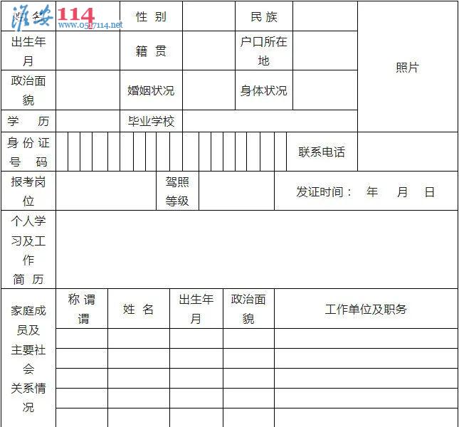 1.淮安區(qū)公務(wù)用車集中服務(wù)平臺(tái)公開招聘駕駛員報(bào)名表