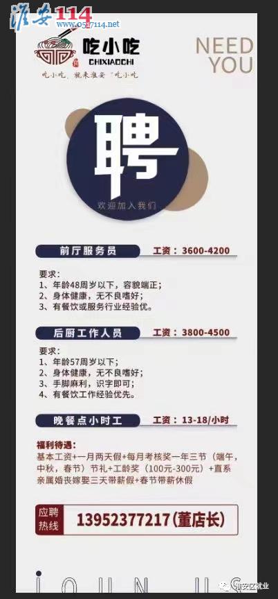 淮安百姓網(wǎng)關(guān)鍵詞:吃小吃招聘服務(wù)員、后廚和小時工